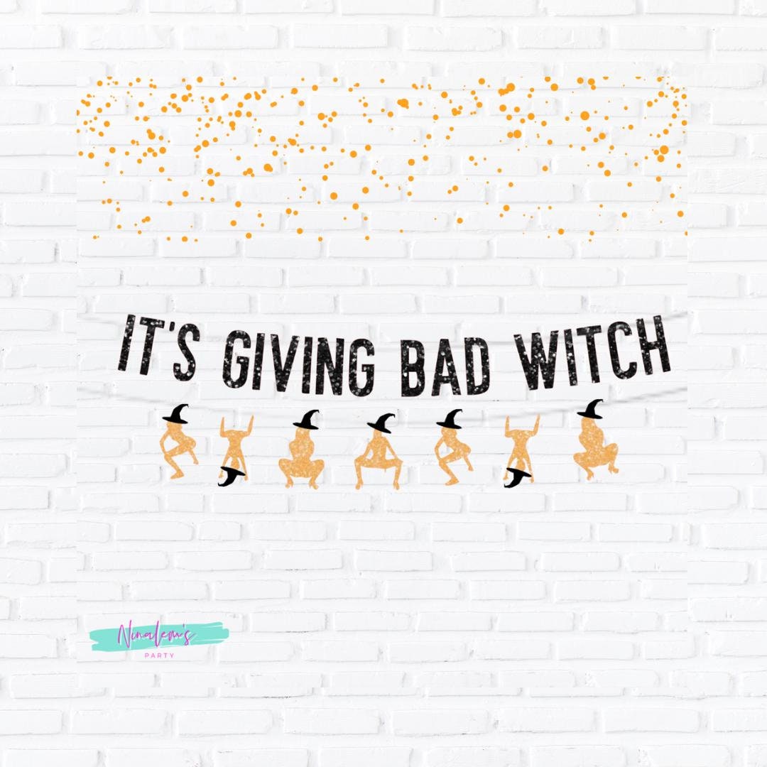 This Listing is for ONE (1) "It's Giving Bad Witch" banner as shown with twerking witches (you read that right!)