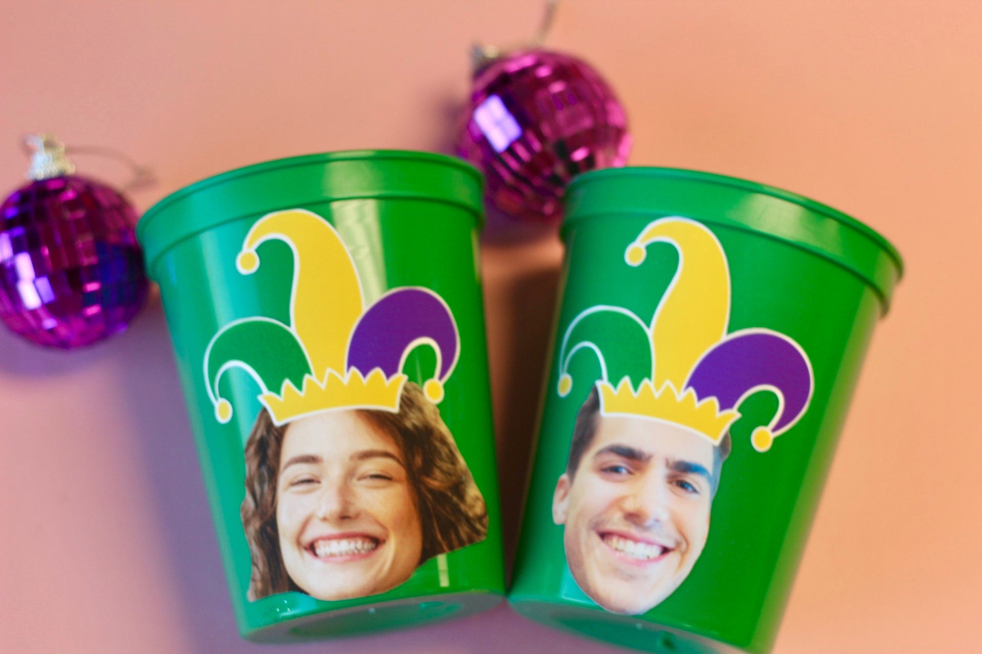 These custom face cups are the perfect addition to your Mardi Gras or Nola Bachelorette Party!