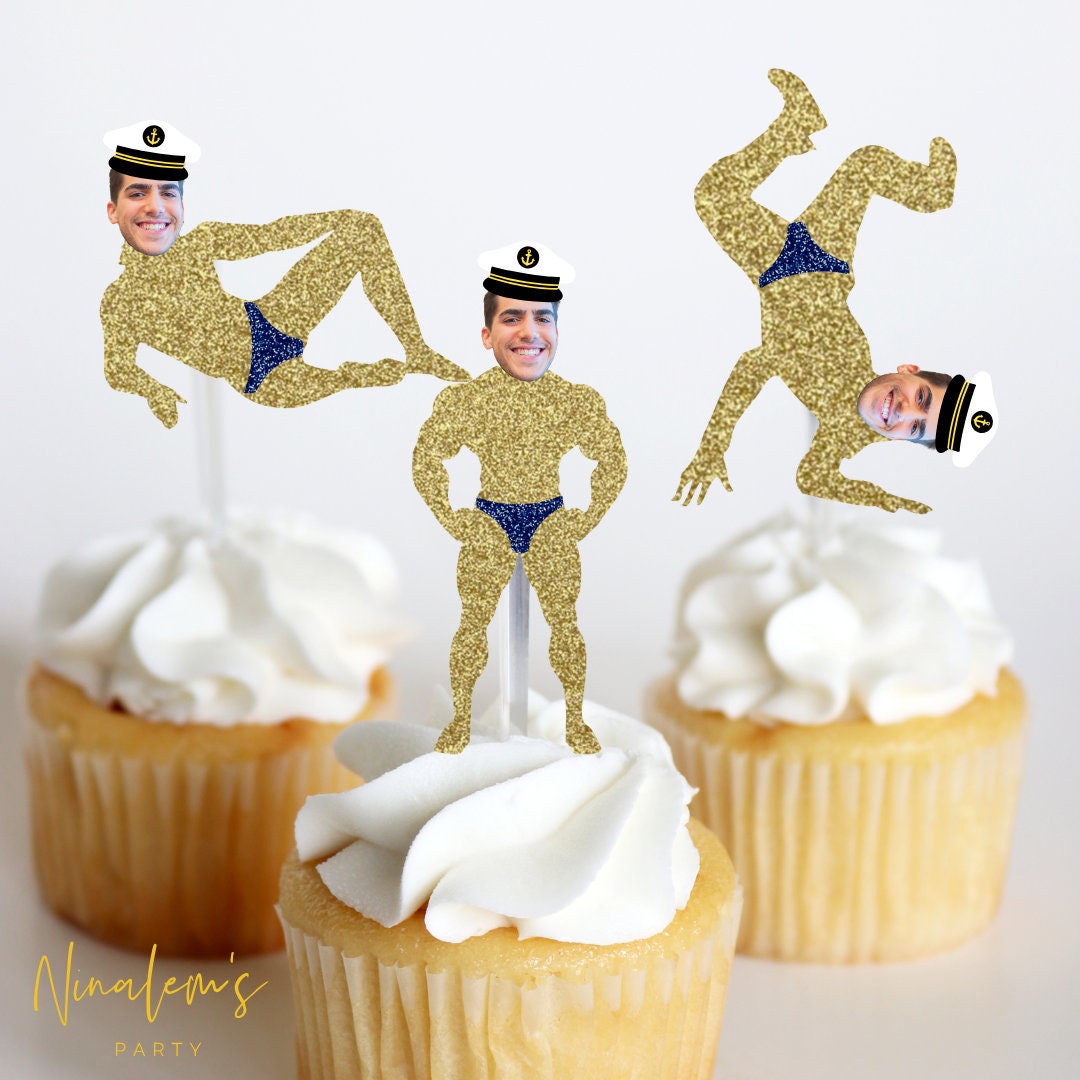 Bachelorette Party Decorations, Beach Bachelorette Groom Face Cupcake Toppers