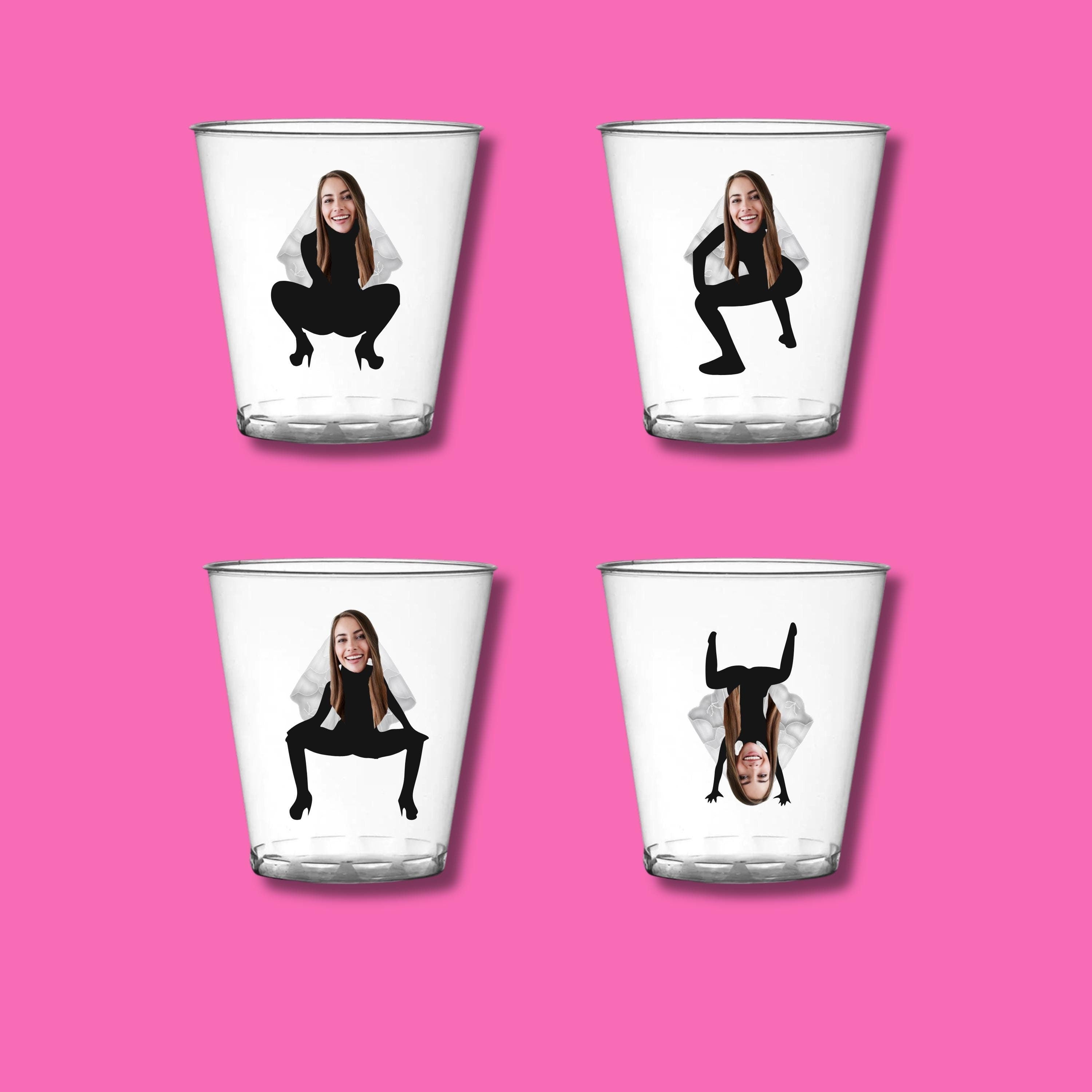 Bachelorette Party Decorations, Funny Personalized Bride Twerk Face Plastic Shot Glasses