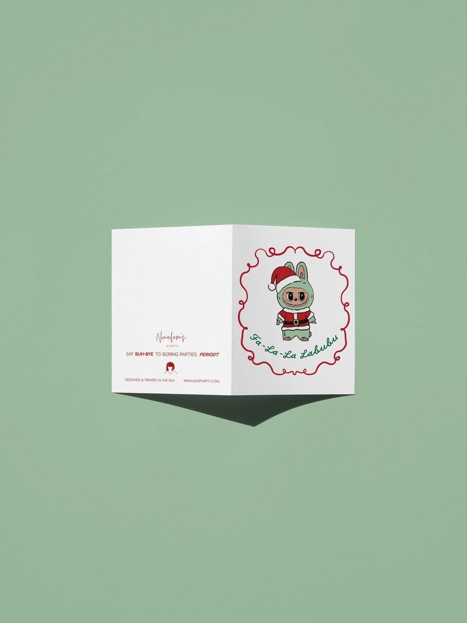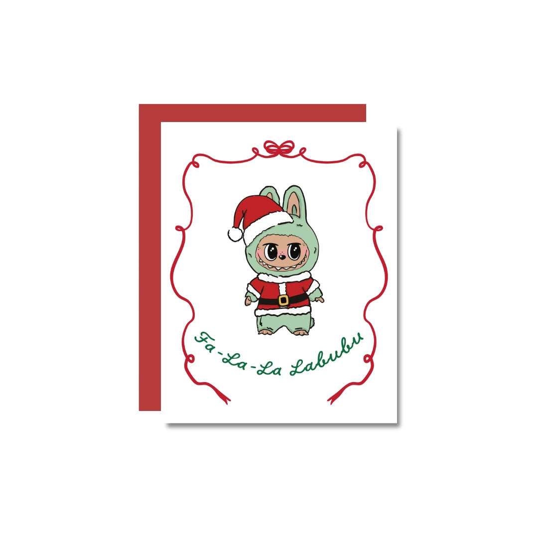 Fa La La Labubu Christmas Greeting Card (Red Ribbon Style)